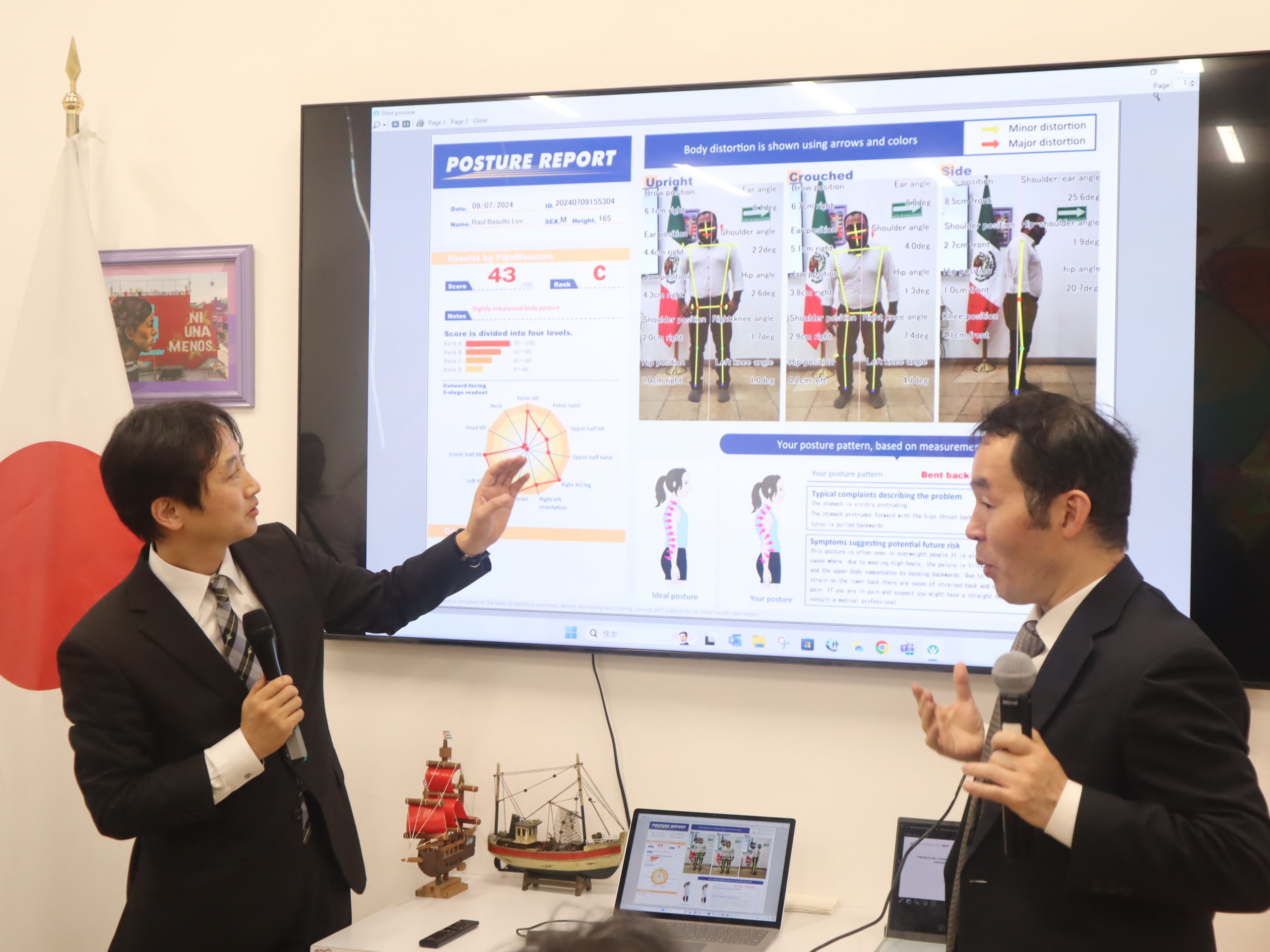 メキシコ市イスタパラパ区施設にて、メキシコ大使館様、JICAメキシコ様のご発表中に、AI姿勢評価システム『ゆがみーるクラウド』を紹介メキシコ市イスタパルタ区の施設「バルコ・ユートピア」にて、ゆがみーるクラウドのデモが行われました。 在メキシコ日本国大使館の廣田司公使とJICAメキシコ事務所長の小林千晃様が2024年7月9日にイスタ ...