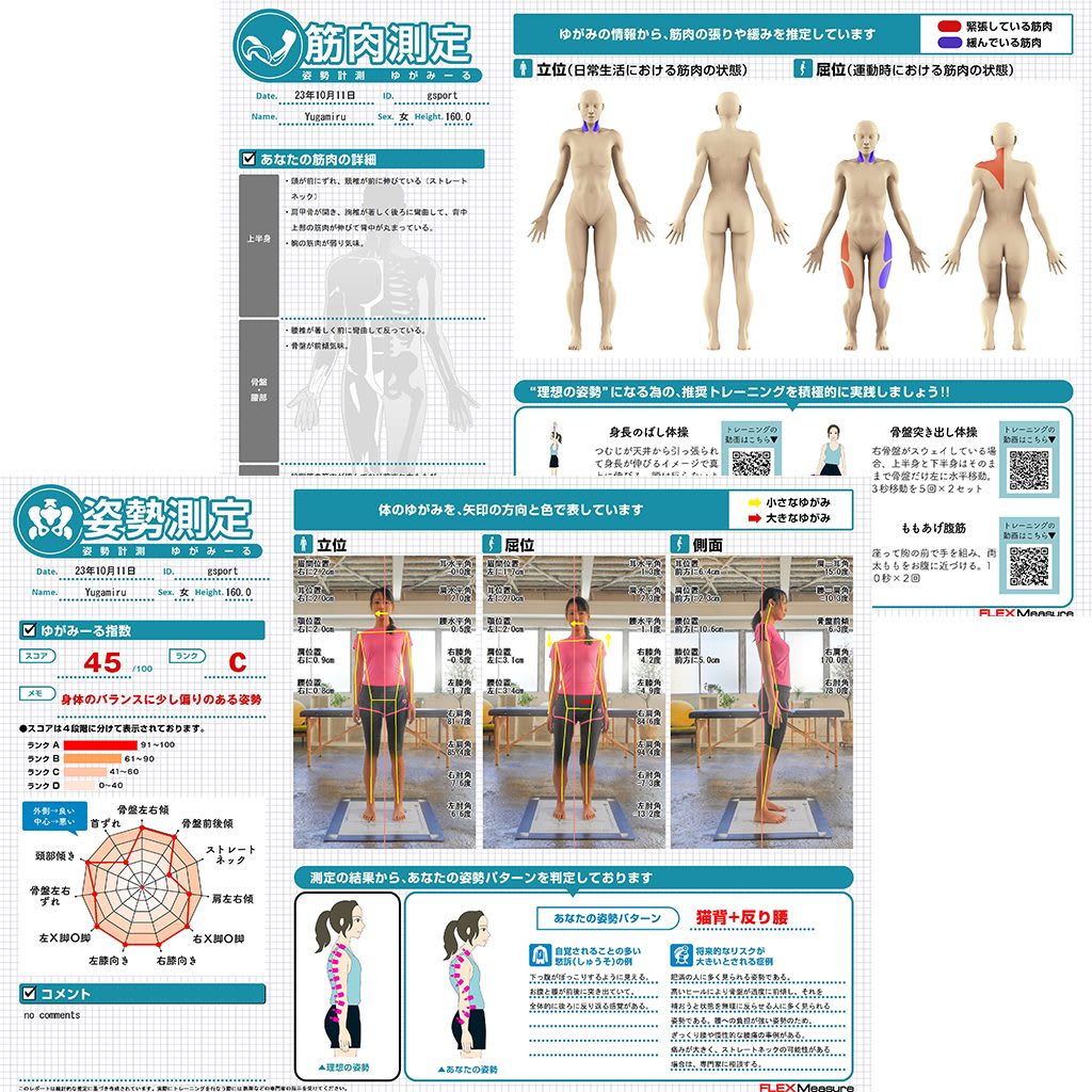 ゆがみーるは来院者全員を対象に姿勢測定を実施しています。初回は施術前に測定を行い、レポートをもとに「今の身体の状態」をわかりやすく説明。