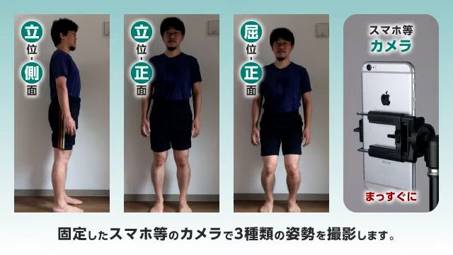 「側面」「正面」「屈位」の3姿勢を撮影します。